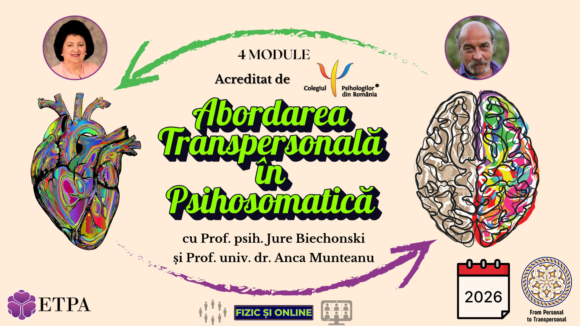 Toate modulele din cursul „Abordarea Transpersonală în Psihosomatică” vor fi și ONLINE.Ne asigurăm că te vei simți inclus și că te vei simți ca și când ai fi acolo.